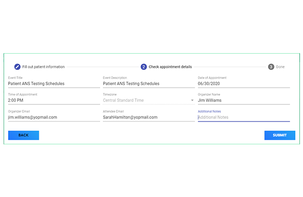 The Doctor’s Office then enters any Additional Notes and click on the SUBMIT button to Successfully Book Event (confirm appointment).