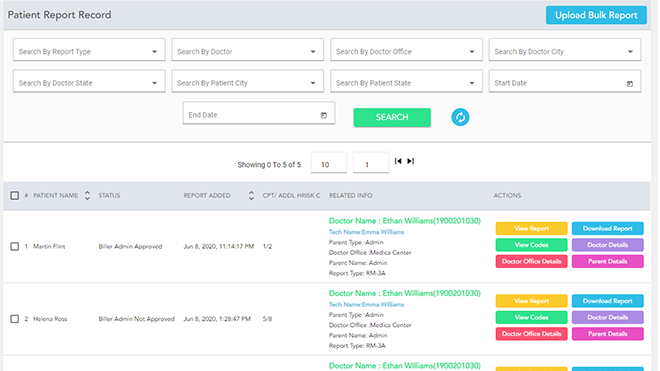 Upon Bulk Upload, all Patient Reports should automatically Map with respective Patients. However, if proper Automatic Mapping of Patients does not happen for any particular Patient Report, Technician must click on the Select Patient button to manually Map Patient Reports with respective Patients.