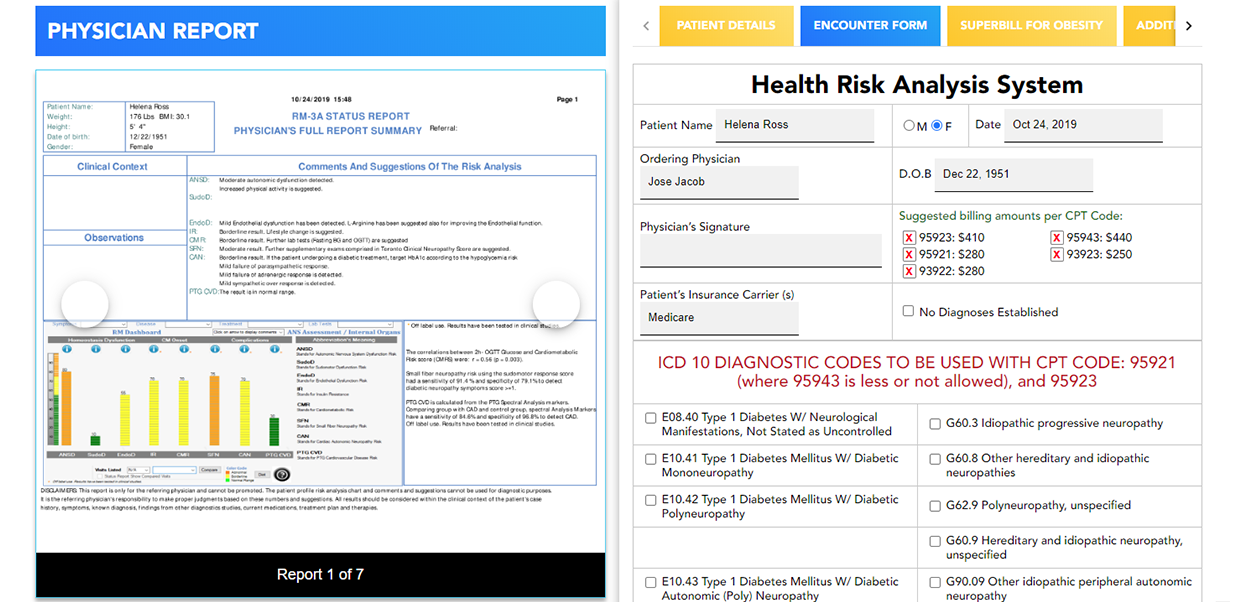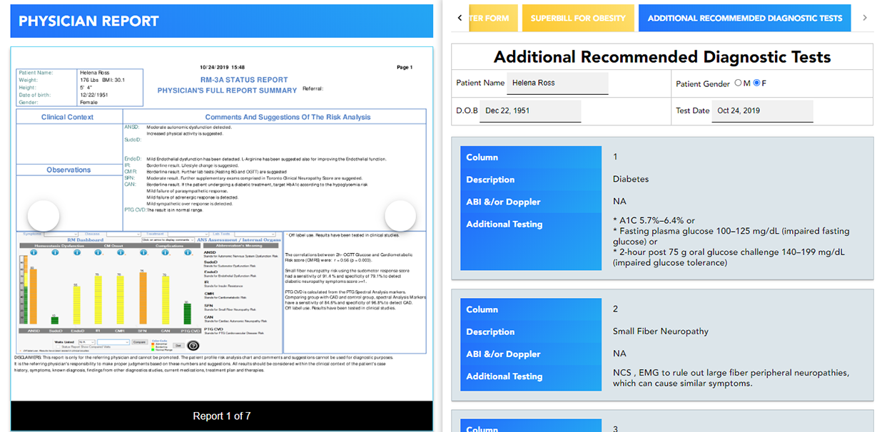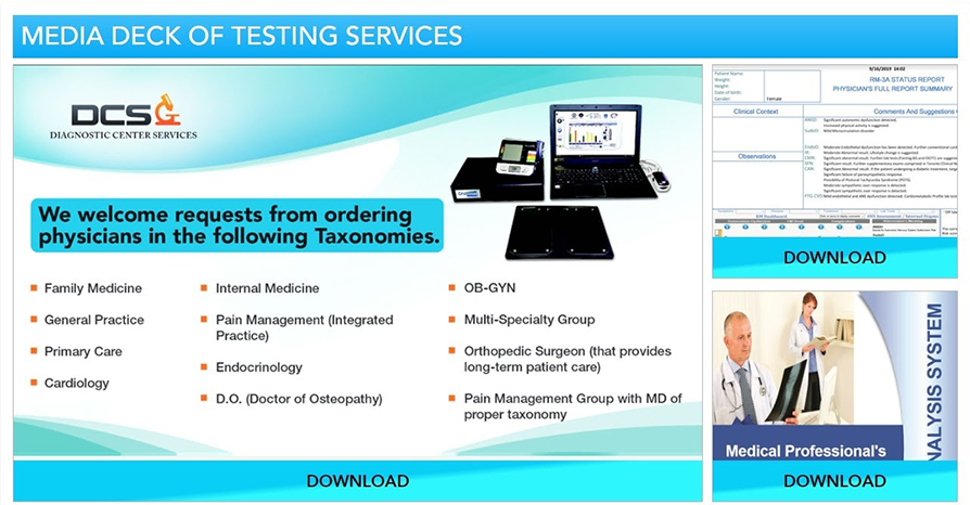1An overview of Diagnostic Center Services on offer with the RM-3A Device and associated ANS Testing Services,