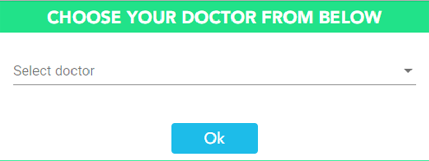 Upon clicking on Book Appointment, Doctor’s Office must select the associated Doctor and click on OK to view available booking slots.